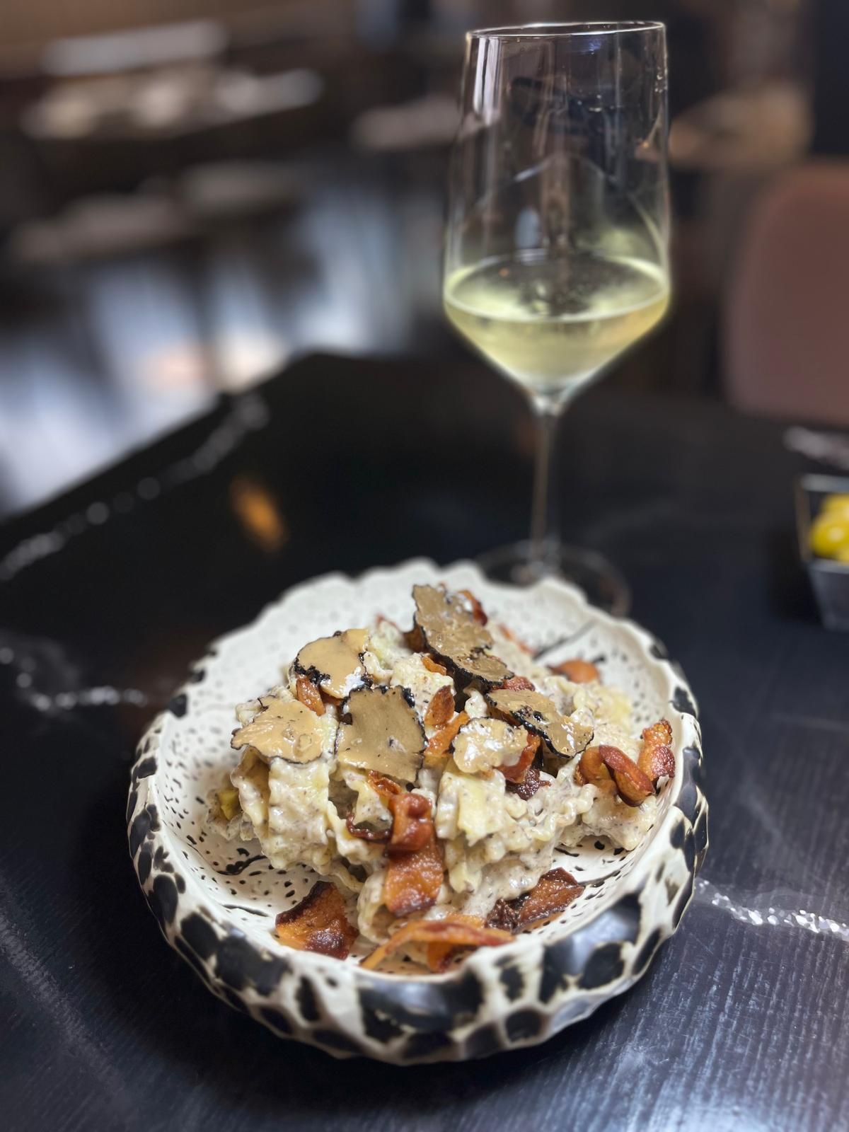 Satisface los paladares más exigentes. Base de nata, cremosa burrata, queso 100% mozzarella, guanciale Amatriciano rúcula fresca y una lujosa crema tartufo.