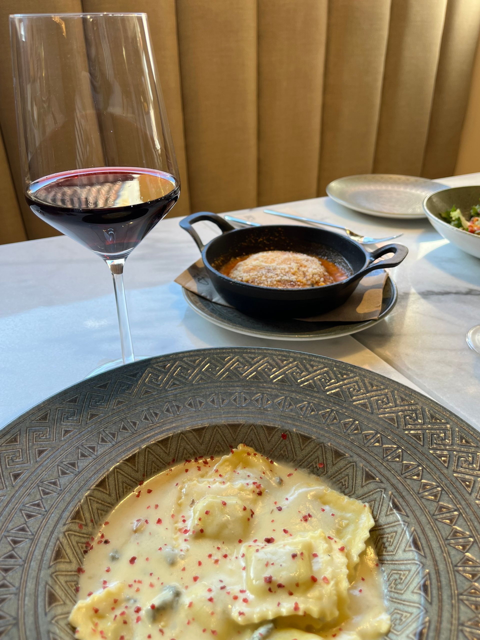 Masa fermentada lentamente, cubierta con mozzarella fior di latte fundida al horno, prosciutto Cotto , burrata de Puglia y pistacchio di Bronte troceado. Un juego de texturas cremosas y saladas para un placer italiano puro.